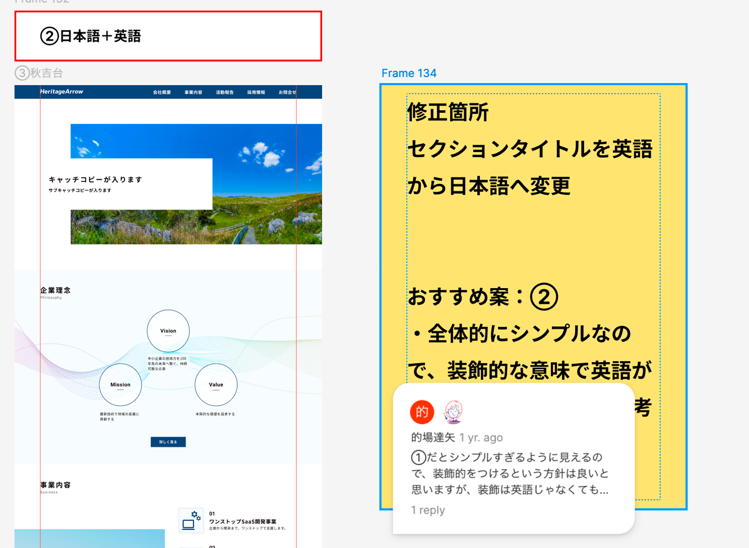 Figmaで成果物に補足コメントを入れたときのキャプチャ